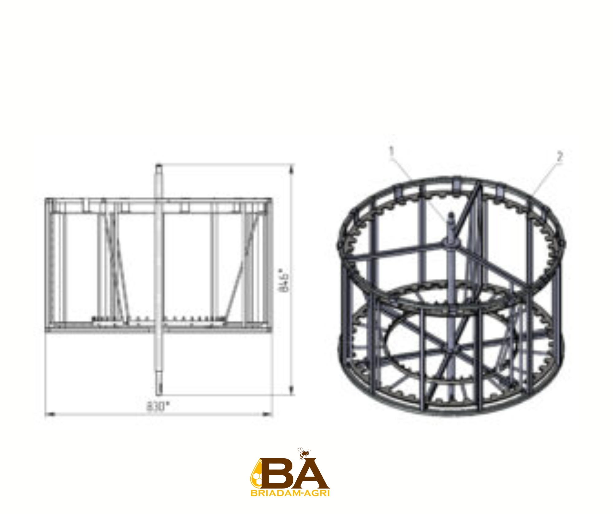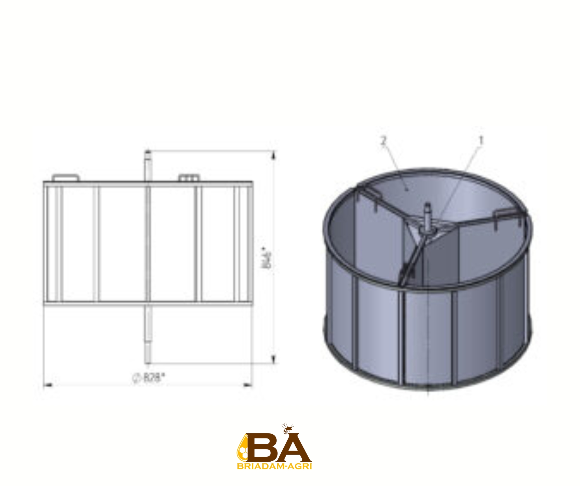 CENTRIFUGEUSE ISOLÉE UNIVERSELLE Ø900 « Cendrillon-1 » : 1) pour l’extraction de cire 2) pour le pompage de miel (rotor à secteurs radiaux)